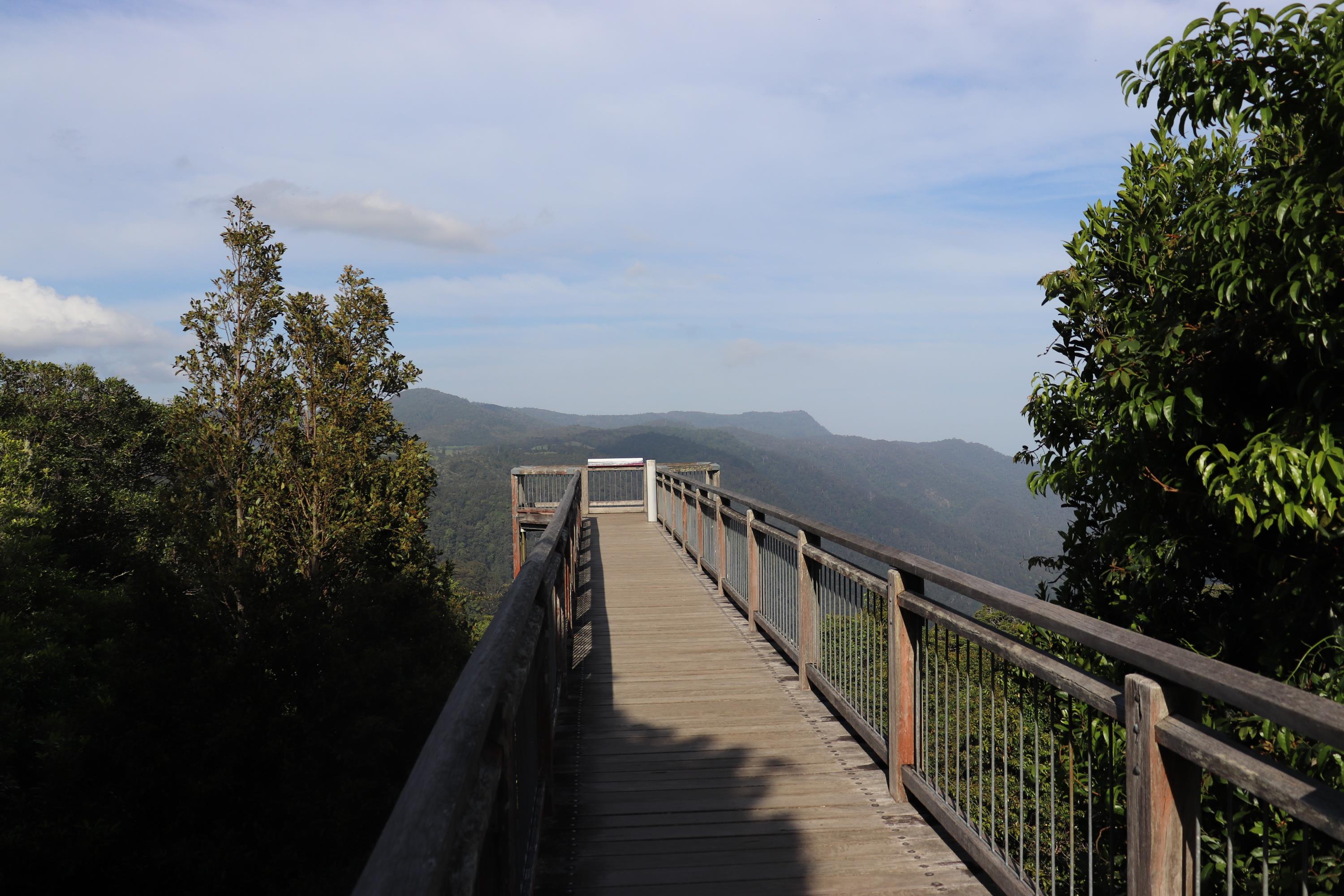 Auf den Skywalk, den wir danach noch besuchten, traute ich mich nur bis zur Hälfte, aber Philip machte ein Foto von der Aussicht. Auf dem Rastplatz des Skywalks entdeckten wir noch zwei Bürstenschwanz-Felskängurus.