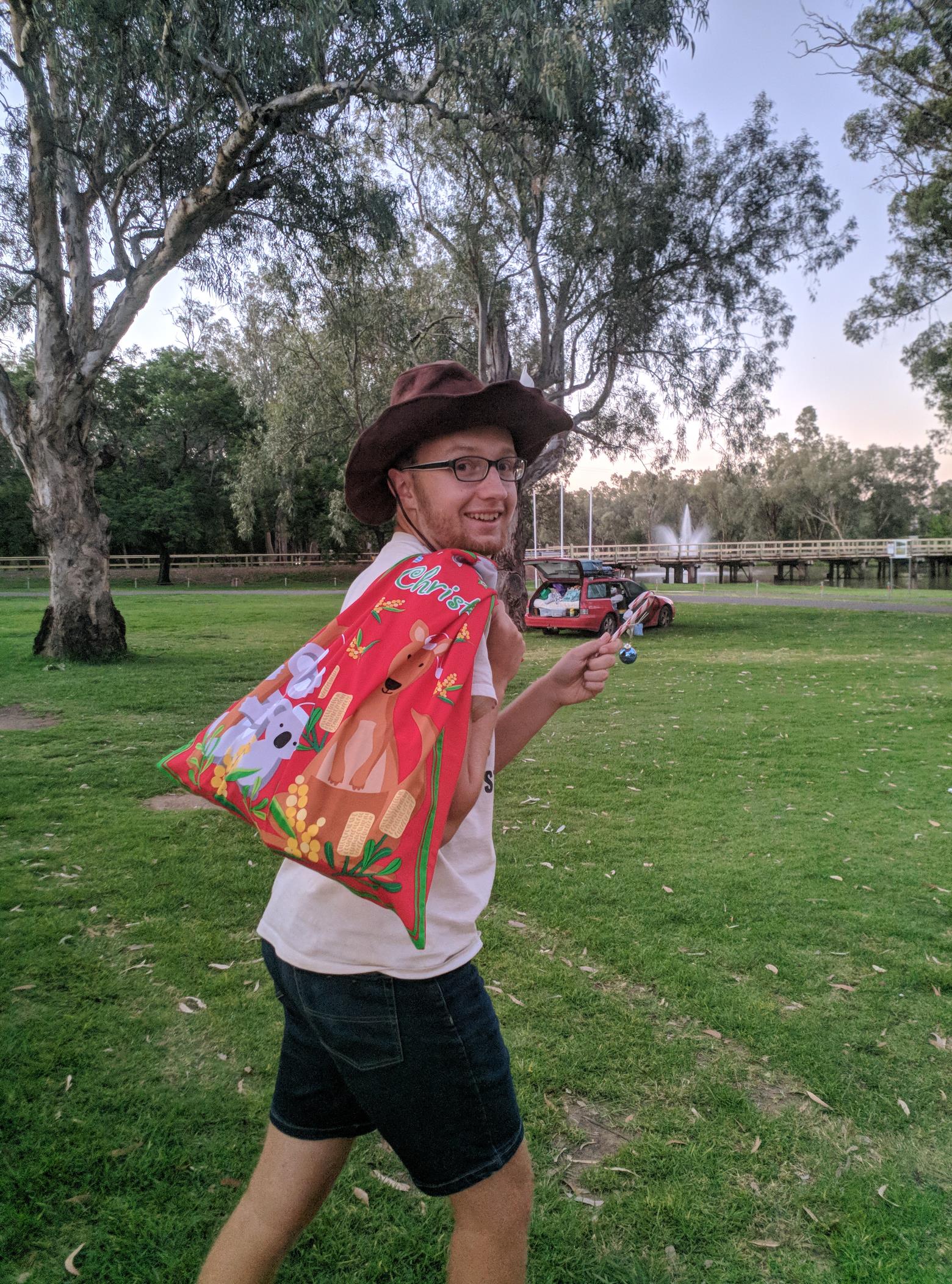 Wir wechselten beim Weihnachtskarten beschreiben heute mal unseren vormittaglichen Standort vom Park in Forbes zur Bücherei hinüber. Ein Hoch auf die Erfindung der Klimaanlage😍😍😍. Hier wurden wir von einem sich verflogenen Spatzen zwischendurch abgelenkt. Aber dieser Widrigkeiten zum Trotz programmierte Philip (psst! Ebenfalls streng geheim, was da programmiert wird. Unterliegt der höchsten Geheimhaltungsstufe) munter weiter.