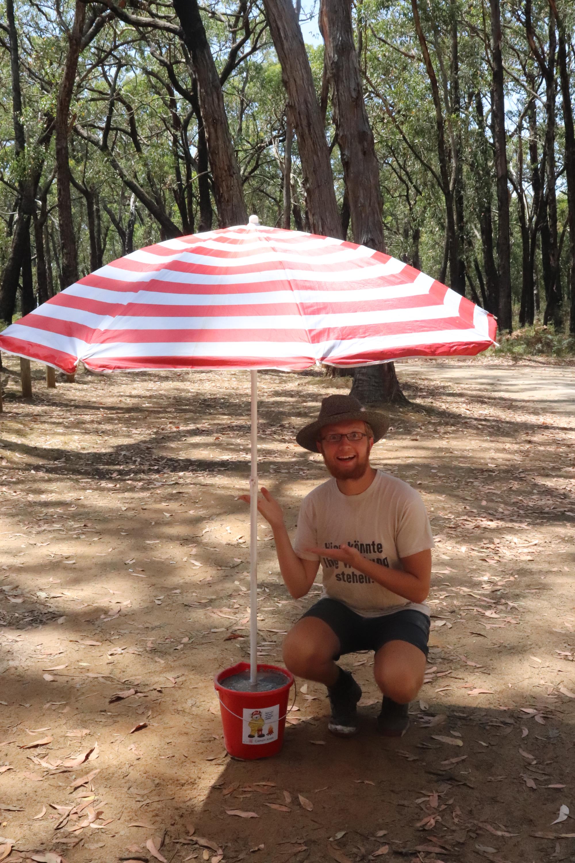 Morgens wurden wir durch ein fröhliches ‘Hello sleepy’ geweckt. Ein freundlicher Mann von der Feuerwehr informierte uns über die Feuergefahren der Gegend, gab uns einiges an Infomaterial mit und eine Prüfflasche für die Aufdeckung potentieller Gaslecks in unserem Gaskocher.