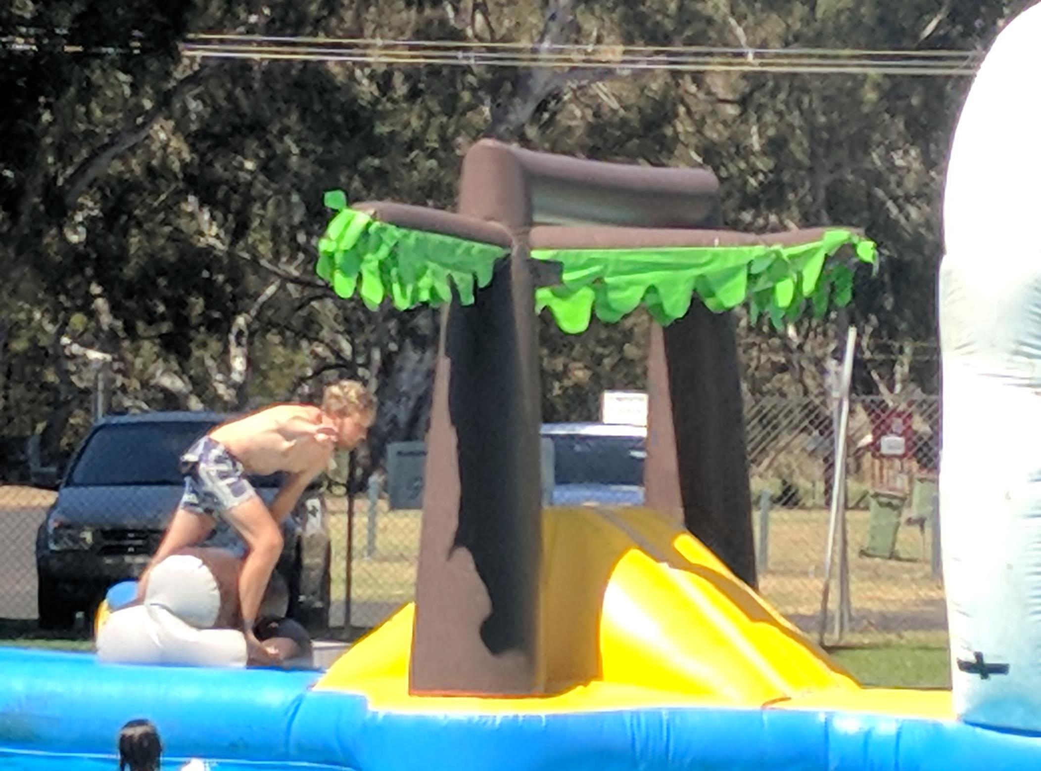 Im Schwimmbad nutzte Philip dann noch das Angebot der aufblasbaren Wasserrutsche und danach fuhren wir nochmal kurz zum Einkaufen nach Portland rein.