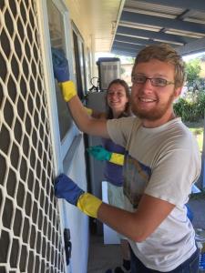Um sieben Uhr trafen wir pünktlich an unserem Arbeitsplatz, einem Privatgrundstück ein und wurden auch prompt von Jo, unserer Chefin, begrüßt. Wir sollten heute die Außenfassade des Einzelhauses abputzen und so machten wir uns frisch ans Werk. Zwischendurch unterhielten wir uns mit Jo über unsere Reise und Reisepläne und darüber, was sie in die Gegend hier geführt hat. Sie ist mit ihren zwei Kindern und ihrem Mann erst vor Kurzem nach Merino gezogen. Zuvor hatten sie wohl einen kleinen Farmbetrieb in Victoria gehabt und sich dann entschieden radikal zu verkleinern und umzuziehen. Deshalb brauchte sie auch etwas Hilfe am Haus und wir freuten uns darüber, eine nette Chefin und eine leichte und gut bezahlte Arbeit zu haben.