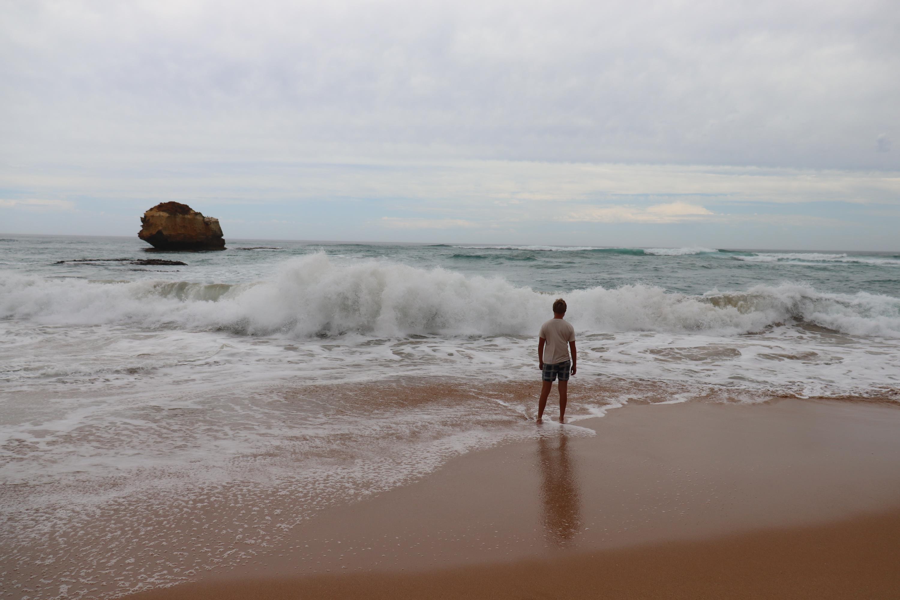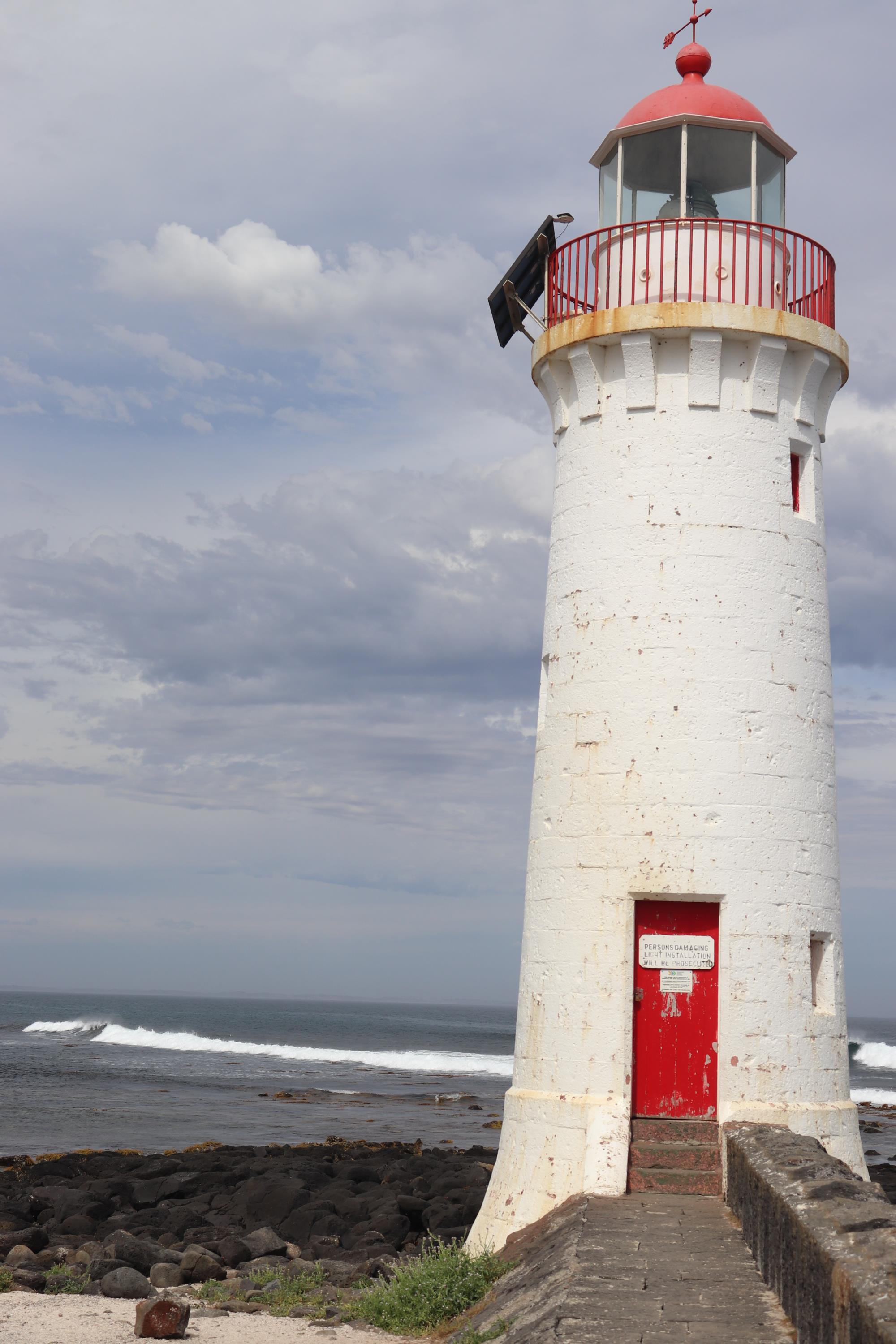 In ‘Port Fairy’, einem zauberhaften Ort unternahmen wir einen Spaziergang zum Leuchtturm (nicht vergleichbar mit unseren Leuchttürmen in Deutschland. Die Türme sehen hier leider alle sehr sehr ähnlich aus.) und genossen die Meeresgischt. Auf dem Weg dorthin und zurück begegneten wir einigen entzückenden Wallabys. Und über eine kleine Bucht führte uns unser Weg zurück zum Auto. Aber nicht ohne vorher in der Bucht baden gegangen zu sein. Der Sand dort war wohl der feinste, den ich je unter meinen Füßen gehabt habe. An ein paar vor sich hin schlafenden Austernfischern (da fühlt man sich doch an die Nordseeküste zurück versetzt) vorbei schlappten wir zurück zum Auto.