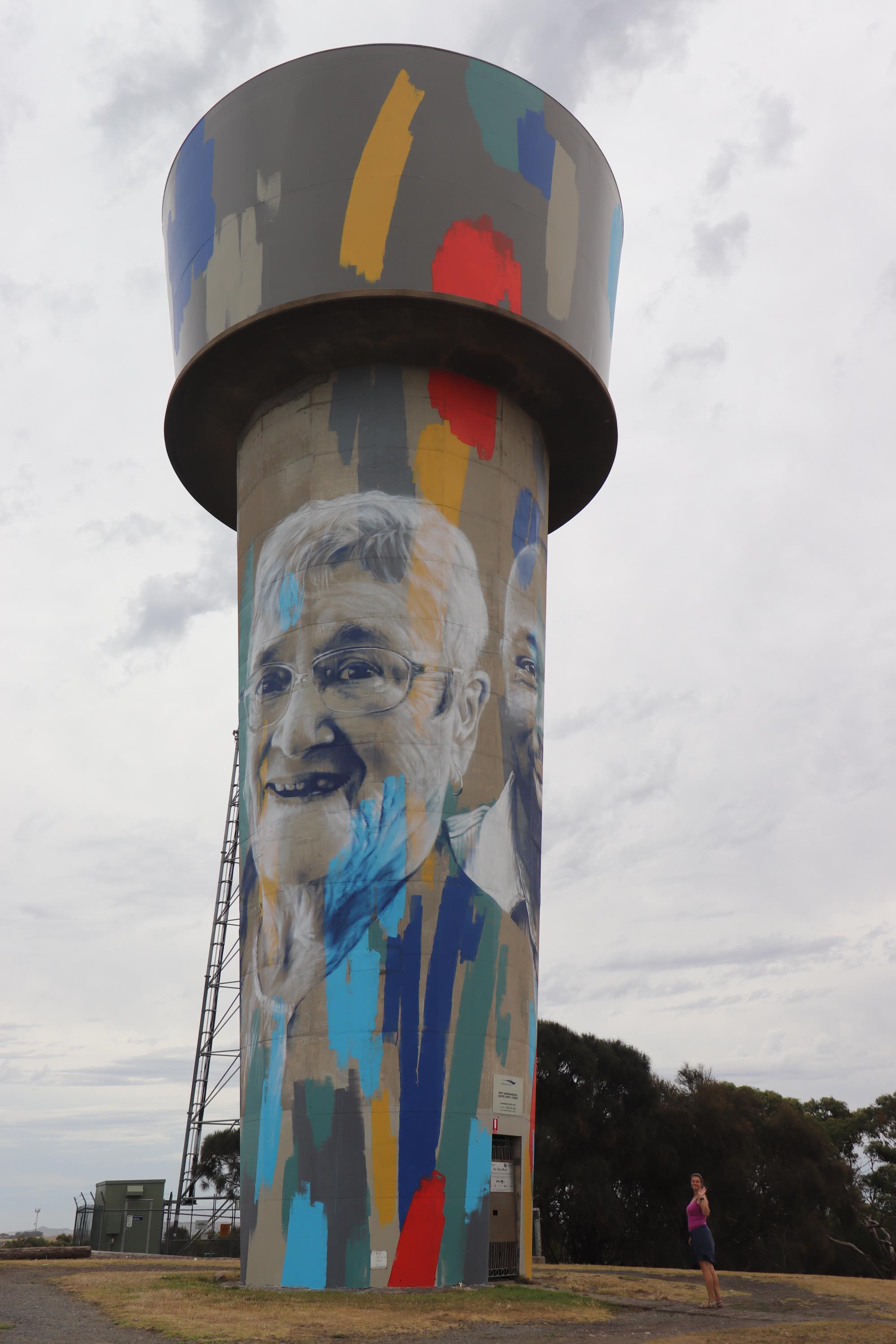 In Warrnambol besorgten wir uns Sushi, was hier angenehm günstig ist und verzehrten unser Mahl an einem kreativ bemalten Wasserturm.