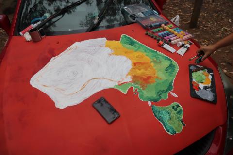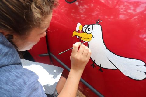 Nachmittags nach einem kleinen Mittagessen, wuschen wir das Auto per Hand in der Waschanlage, weil wir am Sonntag endlich etwas auf dem Auto weitermalen wollten. Der Lack, den wir auf der Motorhaube aufgebracht hatten, war leider dann doch nicht so sonnenfest, wie wir zunächst gedacht hatten. Deshalb mussten wir nun in der Motivauswahl etwas umkonzipieren.