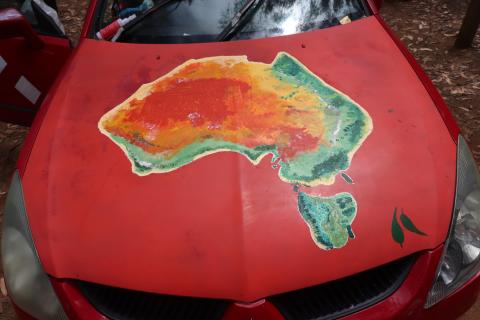 Derweil versuchte ich mich an einer Australienkarte auf der Motorhaube. Sehr praktisch, um anderen Leuten zu erklären, wo wir bereits waren und wo wir noch hin wollen. Und auch praktisch für die Beschreibung potentieller Ausflugstipps von anderen Reisenden. Die Option nahmen einige Australier und Camper wahr und so entstand ein reger Austausch. Worüber wir dann auch unsere Spaghettis im Topf vergassen. Leicht angebrannt schmeckten diese aber immer noch und letztendlich brachen wir nach dem Essen auf nach Merino.