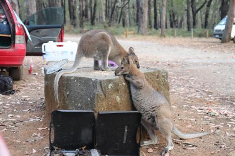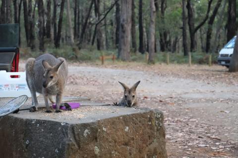 Es zog uns wieder zurück auf unseren Campingplatz mit den Wallabies und so fuhren wir auf den ‘Sawpit’ Campingplatz.
