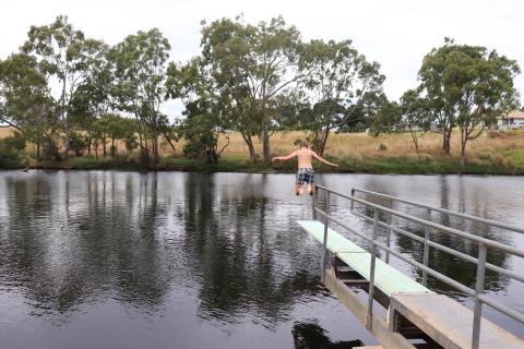 Leider eher eine sporadische Arbeit. So waren wir nach drei Stunden auch schon fertig und fuhren nach ‘Casterton’ zum Schwimmbädchen.