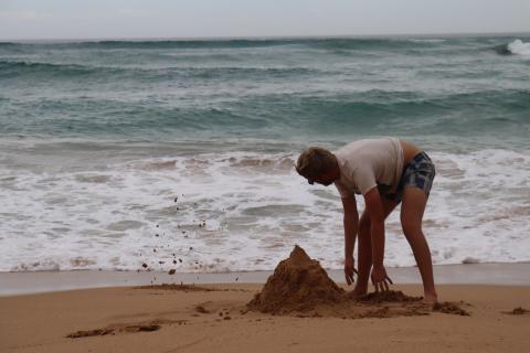Nach einer kurzen Autofahrt kamen wir an der ‘Sandy Cove’ einem schönen kleinen Strand an. Nach einiger Zeit waren wir dort komplett alleine und während Philip versuchte seine Sandburg ‘meereswellentauglich’ zu bauen, joggte ich am Strand entlang. So verbrachten wir einen ruhigen Vormittag und mit dem Einsetzen der Flut machten wir uns auch auf die Weiterreise.