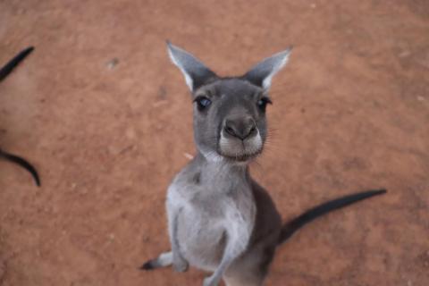 Auf dem Weg zum Campingplatz kamen wir uns vor wie auf einer Safari, weil ständig Tiere am Straßenrand zu sehen waren und wir anhalten mussten. Einen Emu sahen wir, einige ‘Westliche graue Riesenkängurus’ und ein paar ‘Westliche Irmawallabys’, die in ihrer juvenilen Form hübsche Streifen auf dem Rücken haben.