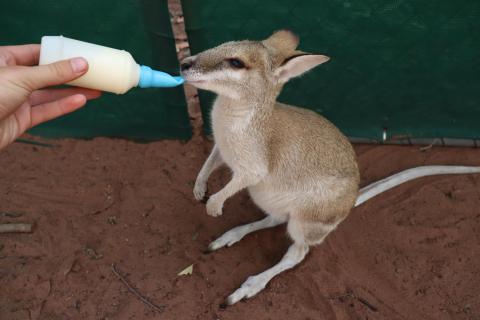 Draußen in den Gehegen waren dann die etwas älteren Kängurus und die, die bald wieder ausgewildert werden sollten. Auch diese durften wir zu unserem Entzücken füttern.