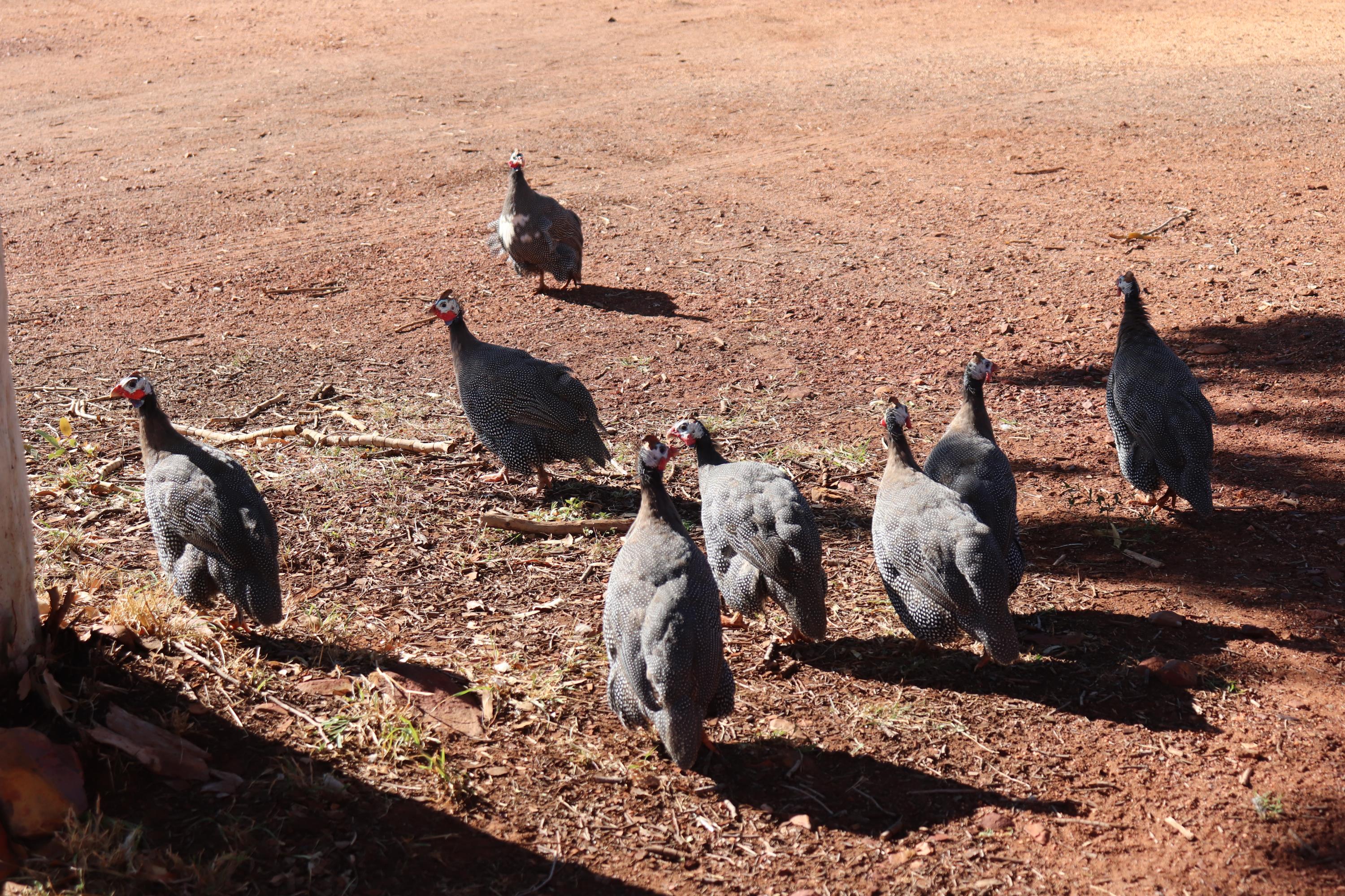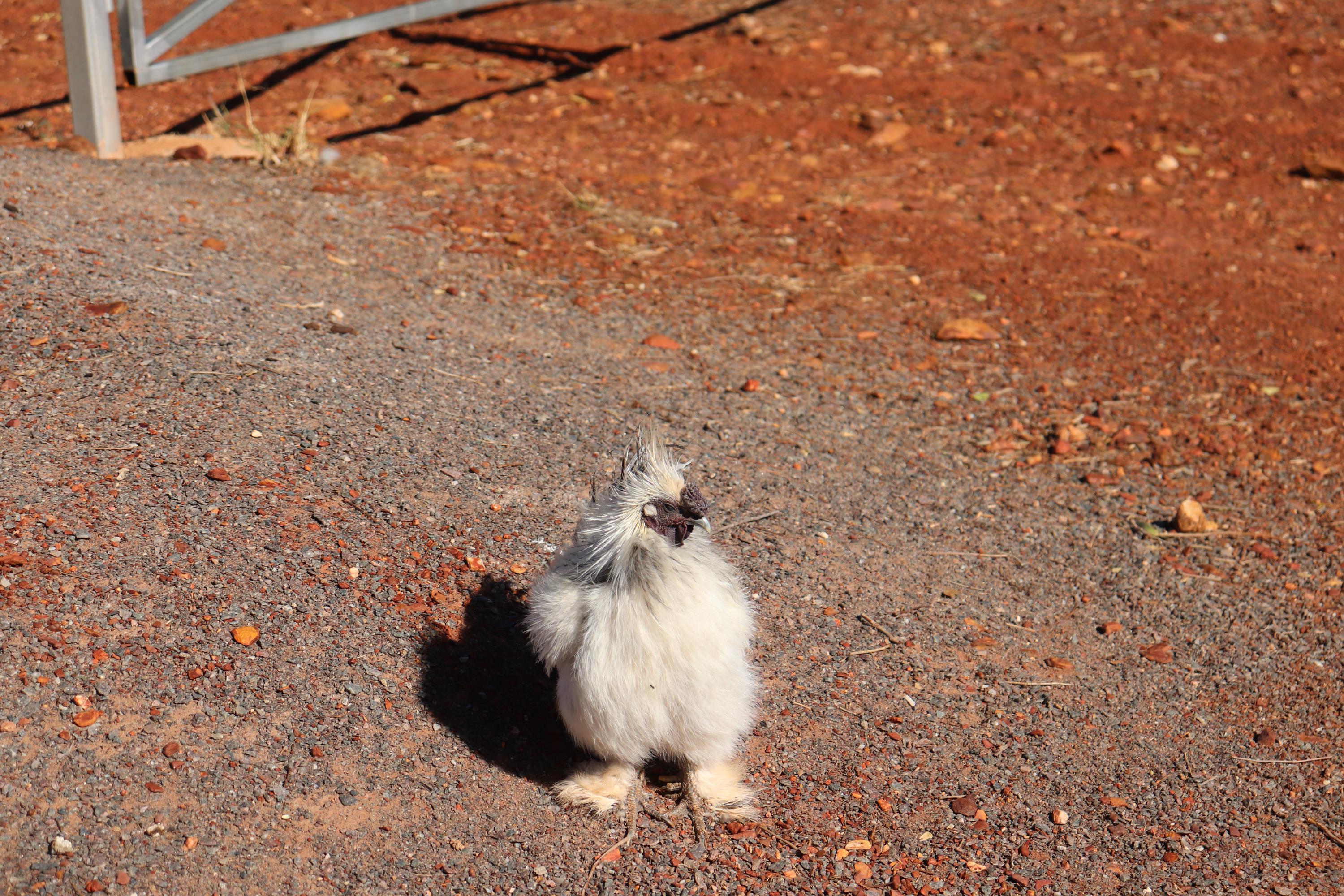Dem ‘Lake Mary Ann', der mehr einer Pfütze von See glich, statteten wir heute morgen einen Besuch ab. Dort sahen wir zwar keine sagenhafte Vogelwelt, wie eigentlich dort zu sehen sein sollte, dafür einige spannende Hühnerrassen, punkige Hühner, Perlhühner und auch Pfauen, die dort in der Gegend herum pickten.