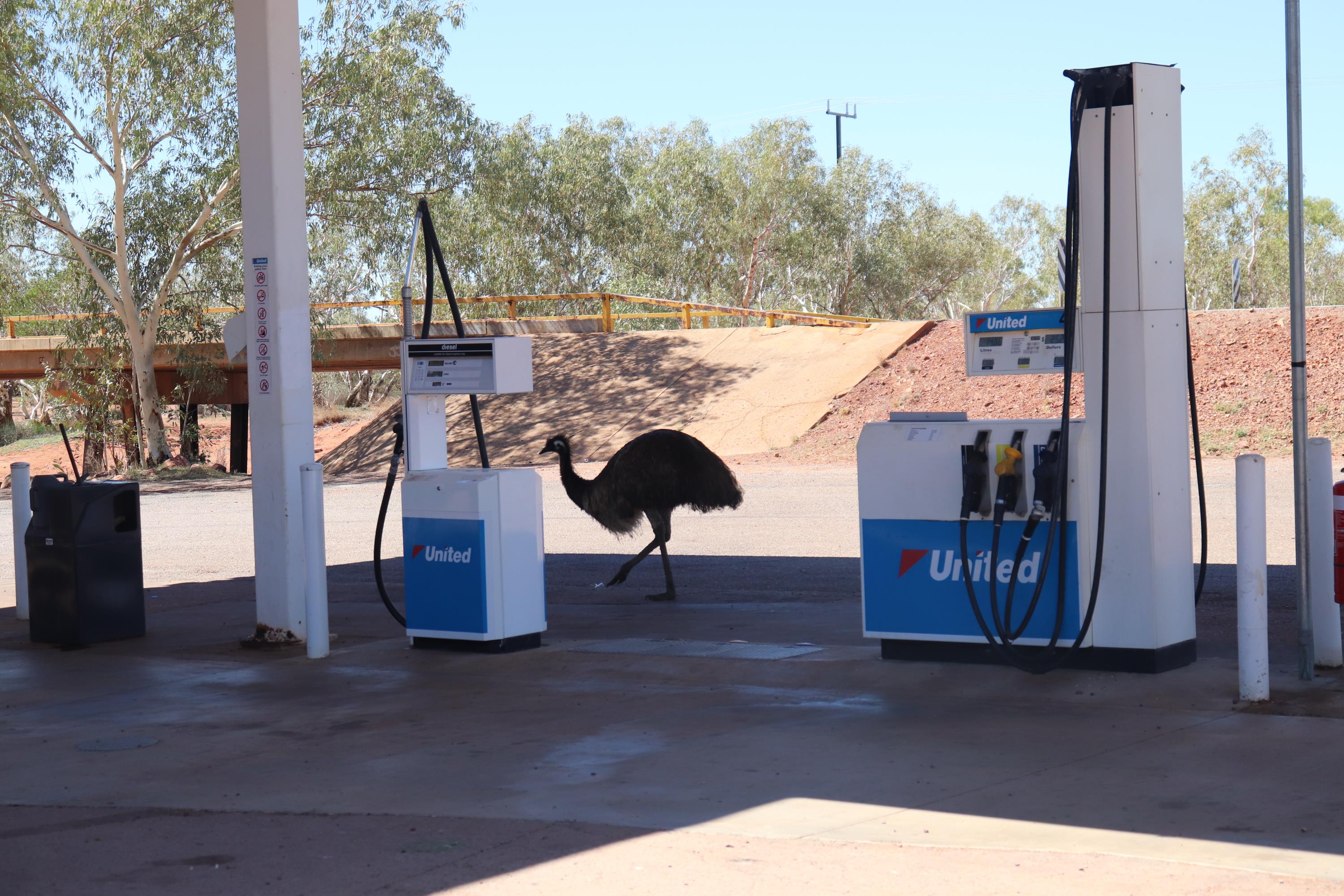 Sehr kalt trotz Sonne und unangenehm windig empfing uns der Morgen heute. Wir machten uns schnell abfahrbereit und frühstückten bei der Fahrt. Nach einiger Zeit hatten wir einen kleinen Zwischenhalt an einem interessanten Roadhouse mit angehängter Emufarm. Ein Weilchen beobachteten wir die eleganten Tiere und dann zog es uns wieder zurück auf die Straße. Schließlich wollten wir heute endlich am Uluru, im Herzen Australiens ankommen.