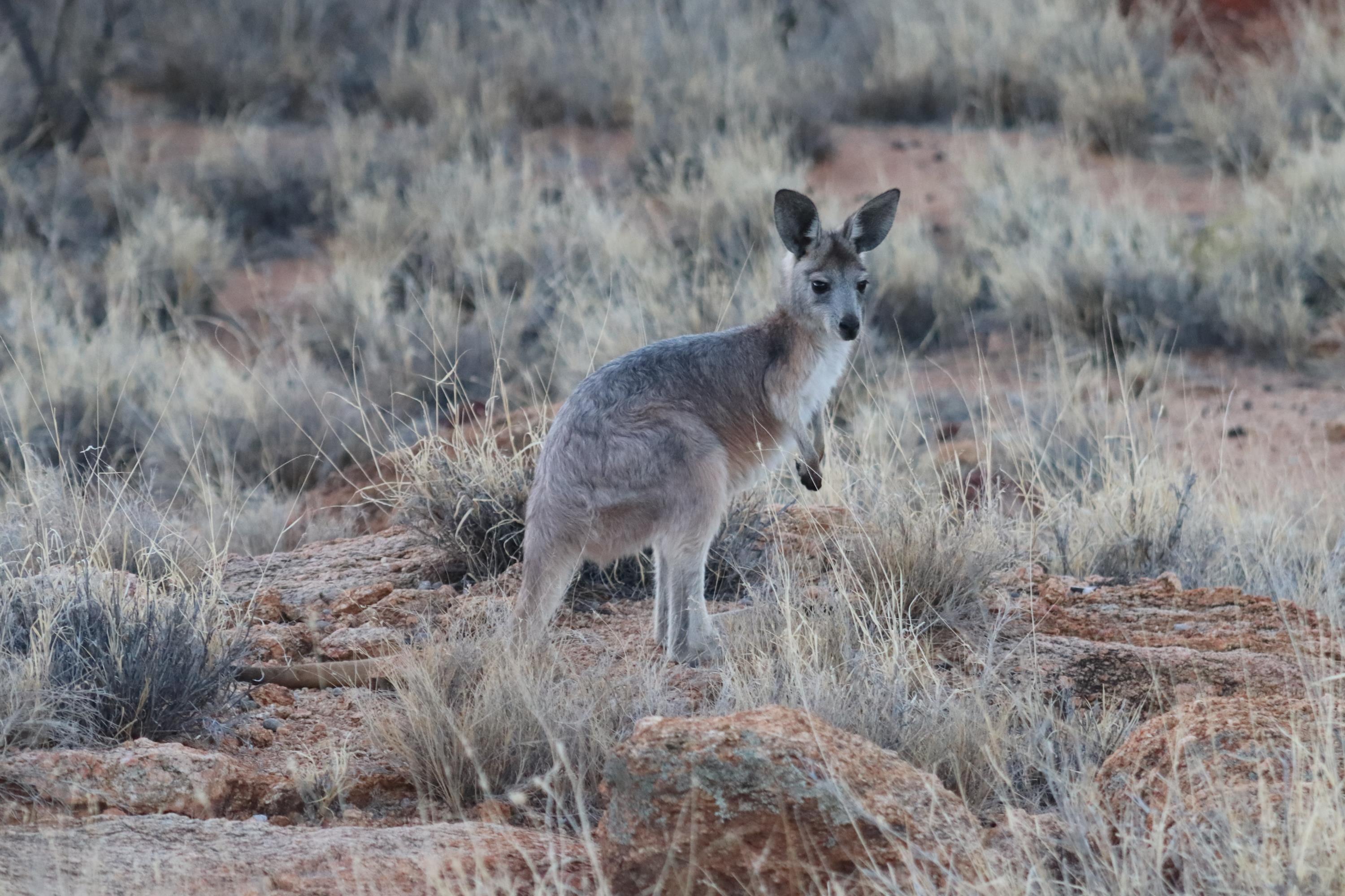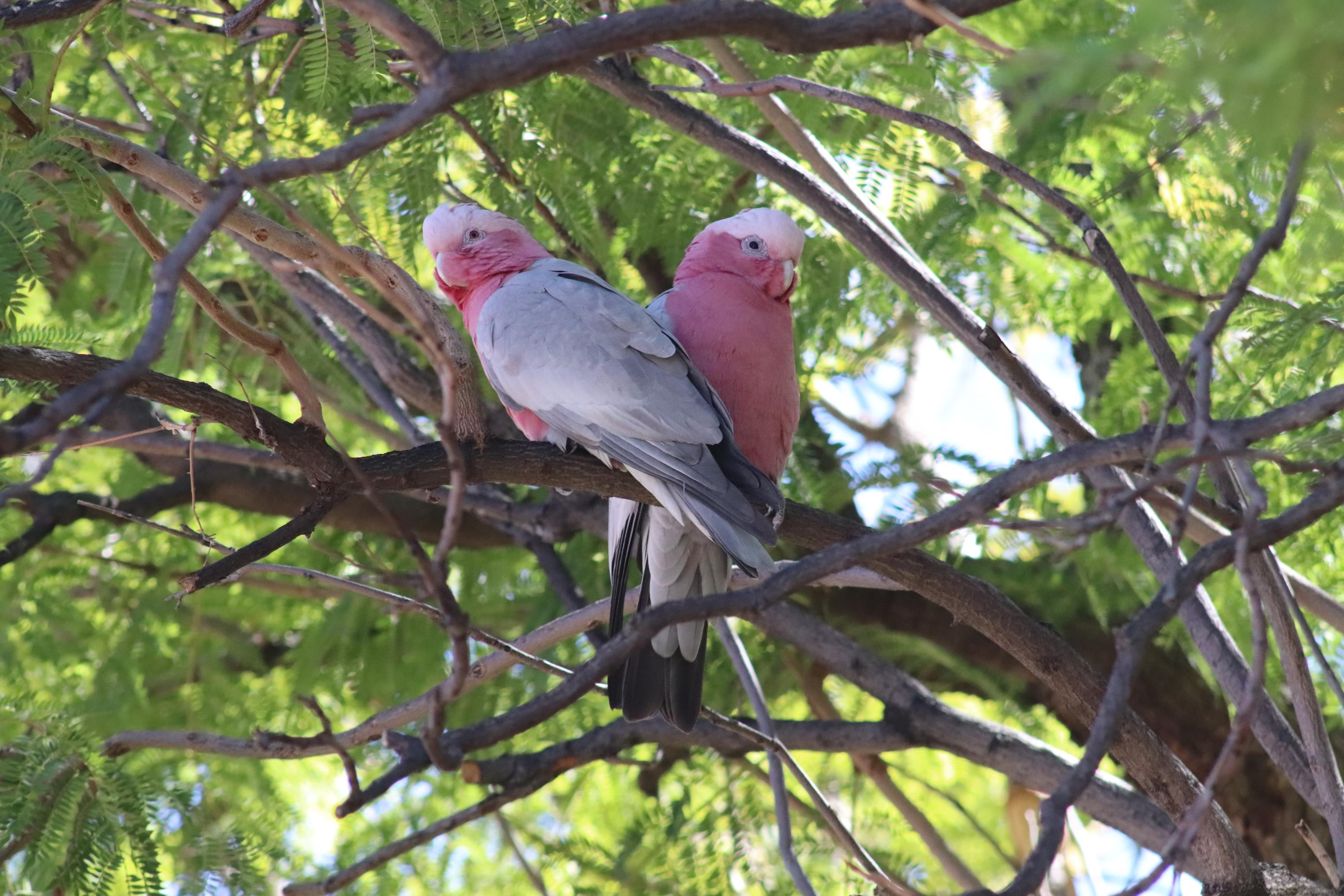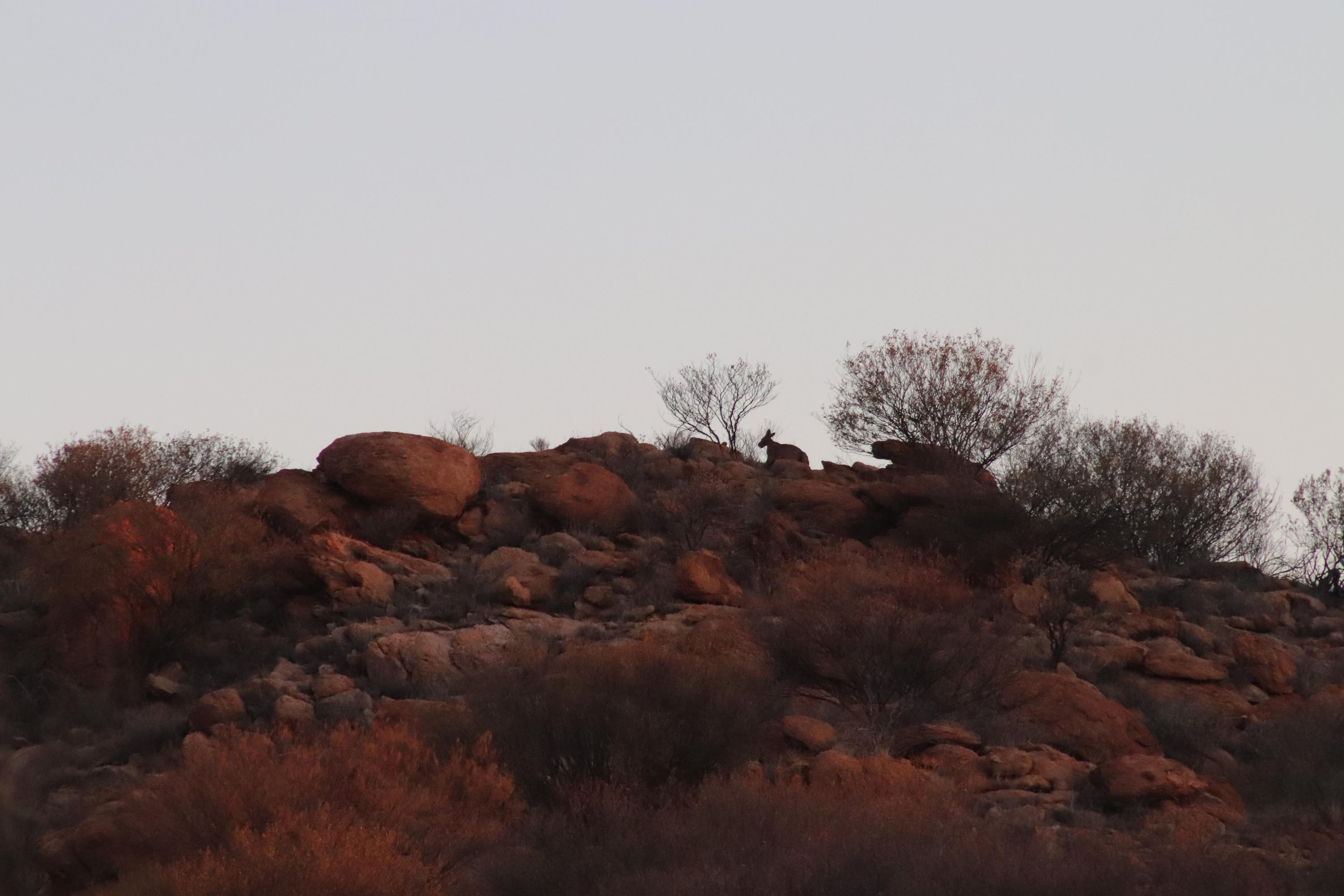Mit Beginn der Dämmerung machten wir einen feinen Spaziergang durch die Landschaft, sahen einige Rosakakadus, Ringsittiche und Kängurus.