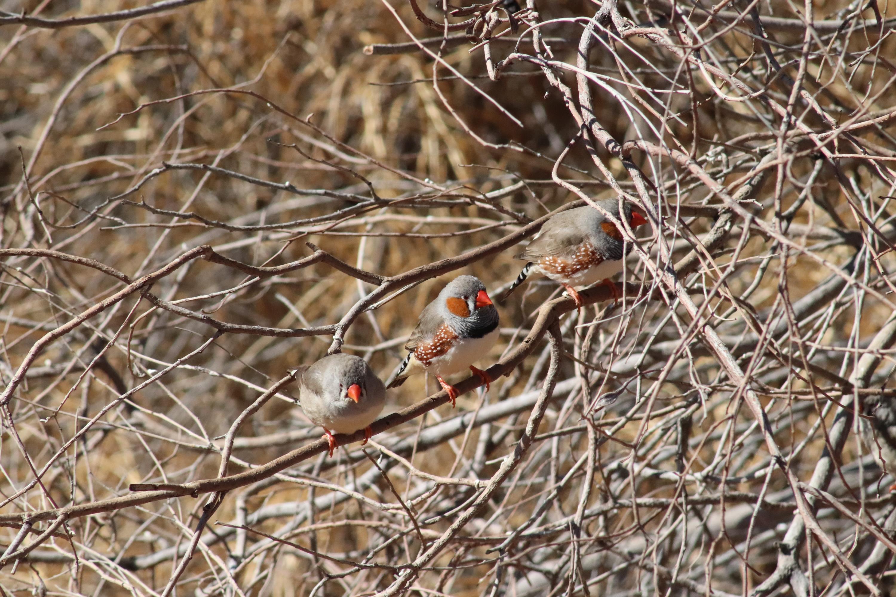 Bei einem weiteren kurzen Zwischenstopp entdeckten wir zufällig einen Busch voller zwitschernder Zebrafinken! Fantastisch!
