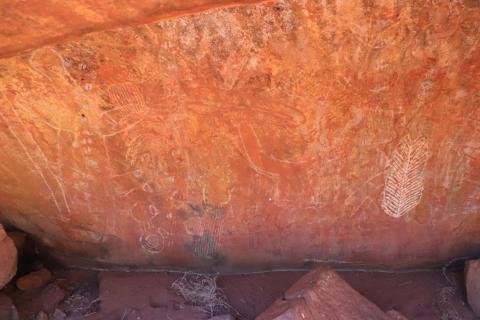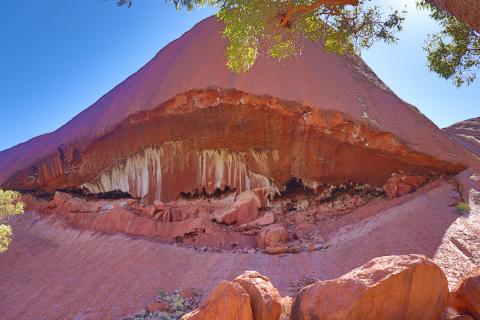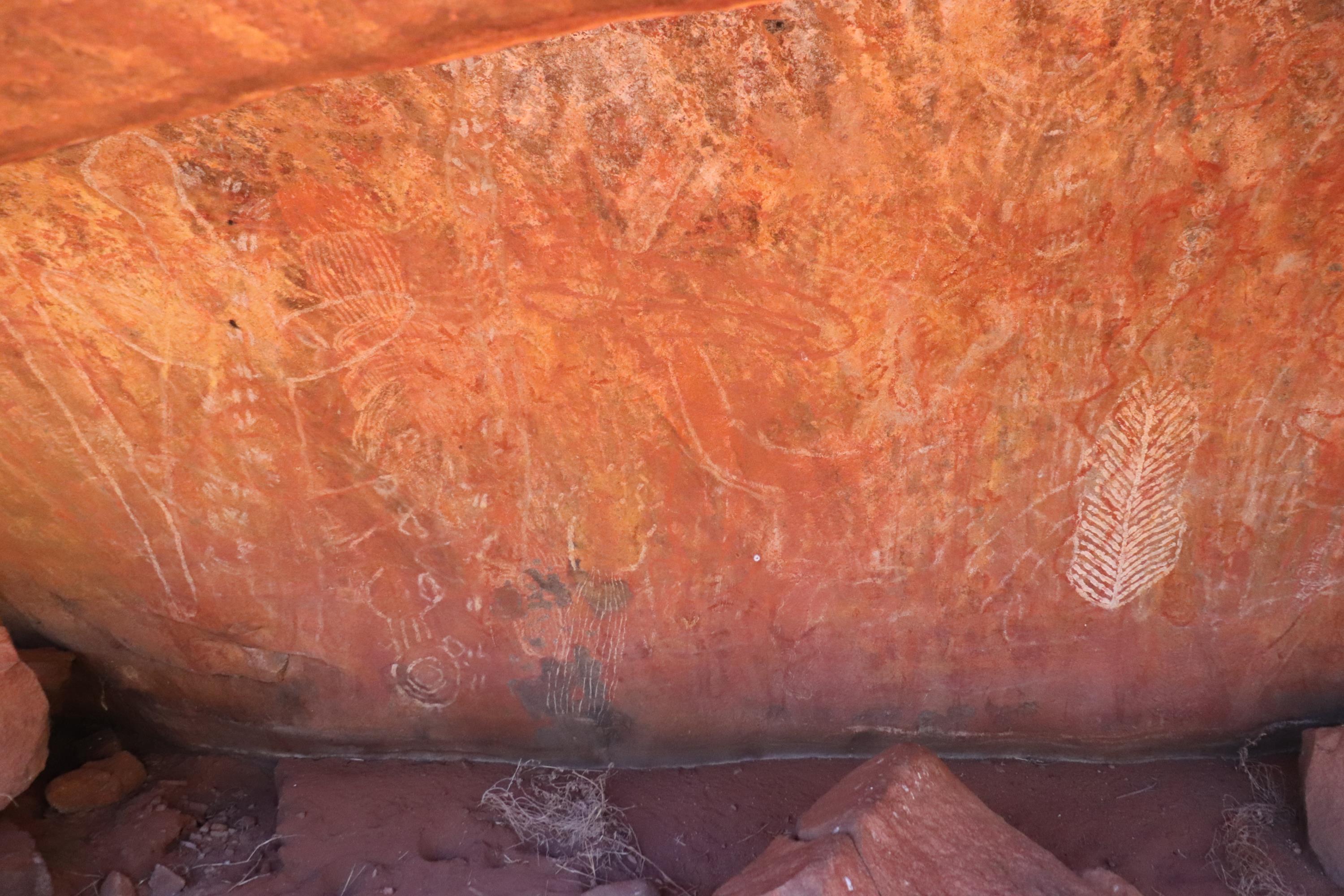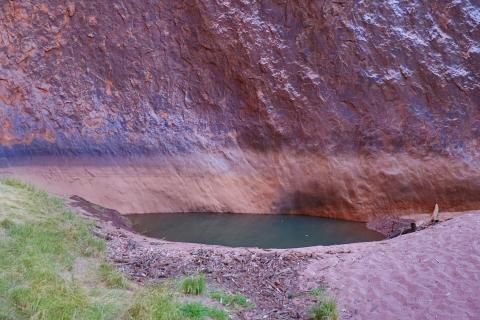 Wir kamen jedenfalls an einigen kulturell signifikanten Stellen der Aboriginals am Uluru vorbei, lasen uns die Geschichten dazu und zu der mythenreiche Entstehung des Ulurus durch und bestaunten den Berg von unten.