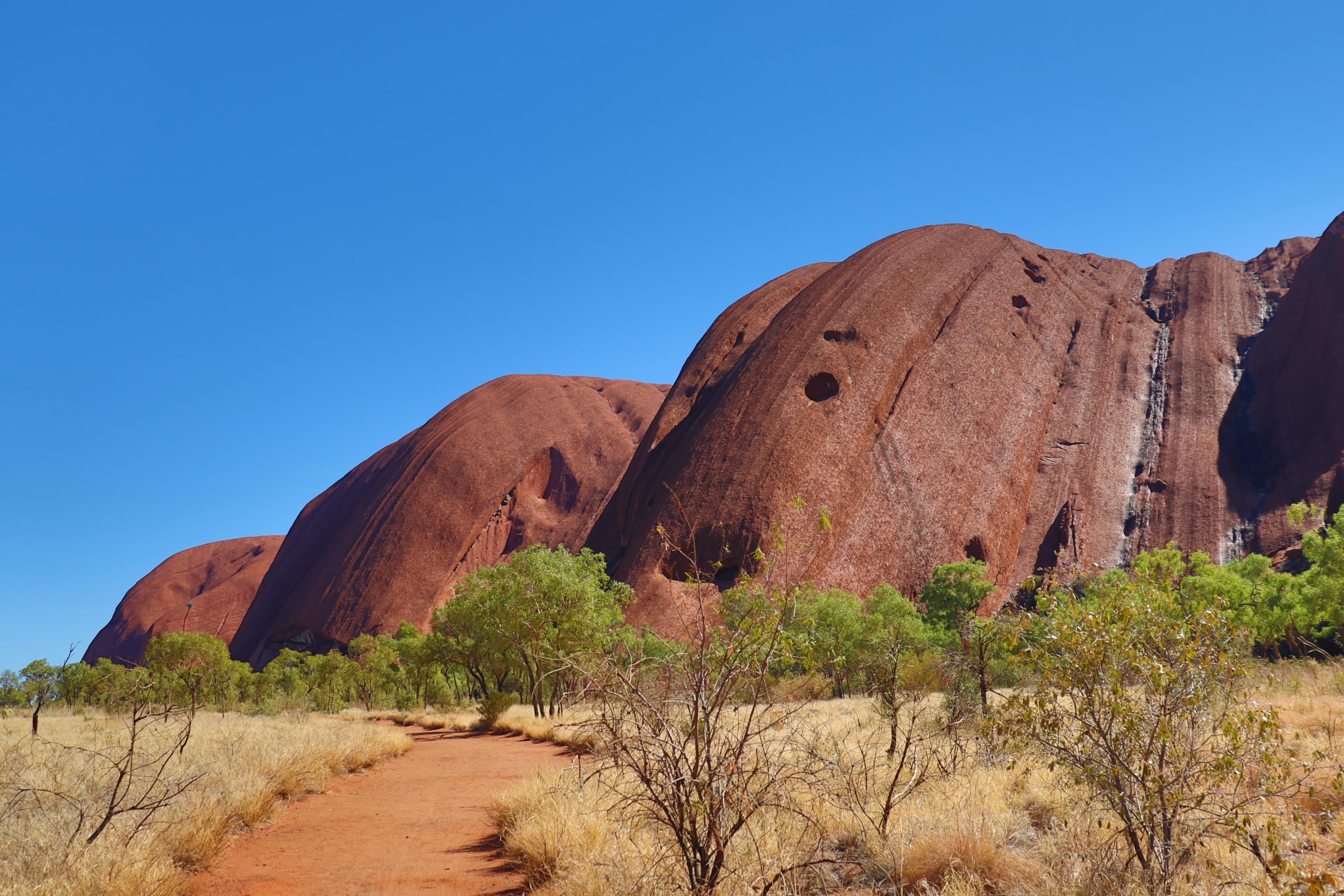 Gegen 11 Uhr wanderten wir heute los. Einmal um den Uluru herum, 10.6 km Strecke. Wir hatten das ideale Wetter für die Wanderung, da es sonnig, aber kühl und windig war.