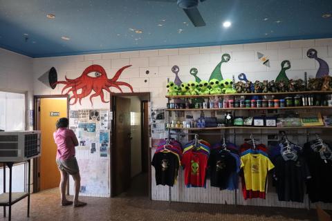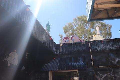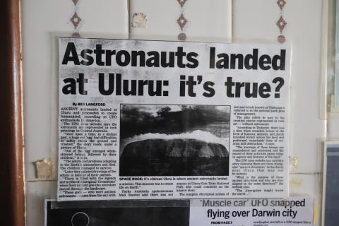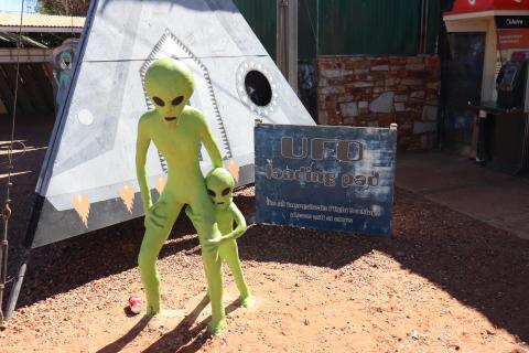Nach einiger Zeit kamen wir dann noch in ‘Wycliffe Well', einer ufo-verrückten spacigen kleinen Stadt an. Die Stadt wird auch die ‘Ufo Capital of Australia’ genannt, weil es hier angeblich zu mehrfachen Ufo Sichtungen gekommen sein soll. Tja, das kann man dann glauben oder (wie in unserem Falle) auch eher nicht. Aber die Mini Ausstellung mit Zeitungsartikeln anzusehen zu dem Thema war auf jeden Fall belustigend. 🤣😂