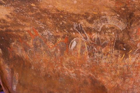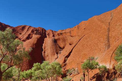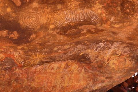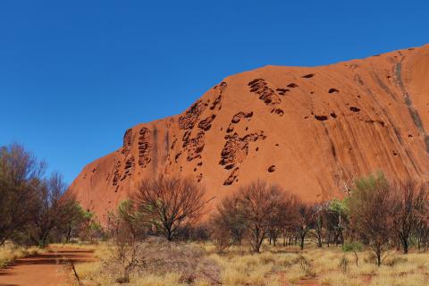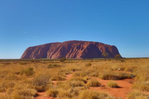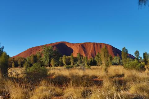 Wir fuhren in den Nationalpark hinein und der Weg führte uns zunächst einmal in das ‘Culture Centre', welches uns einen Einblick in die Geschichte der Aboriginals und den Uluru gab. Von hier aus konnten wir den Berg schon sehr gut sehen.