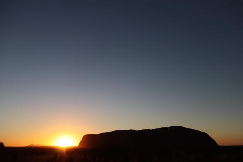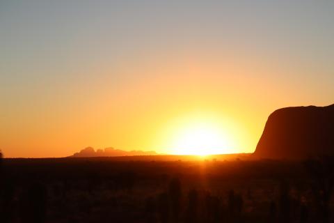 Abends schauten wir uns den Sonnenuntergang mal von einer anderen Stelle aus an. Diesmal sahen wir den Uluru von hinten und die Sonne neben dem Uluru untergehen, statt wie sonst in unserem Rücken. Und auch Kata Tjuta war zu sehen.