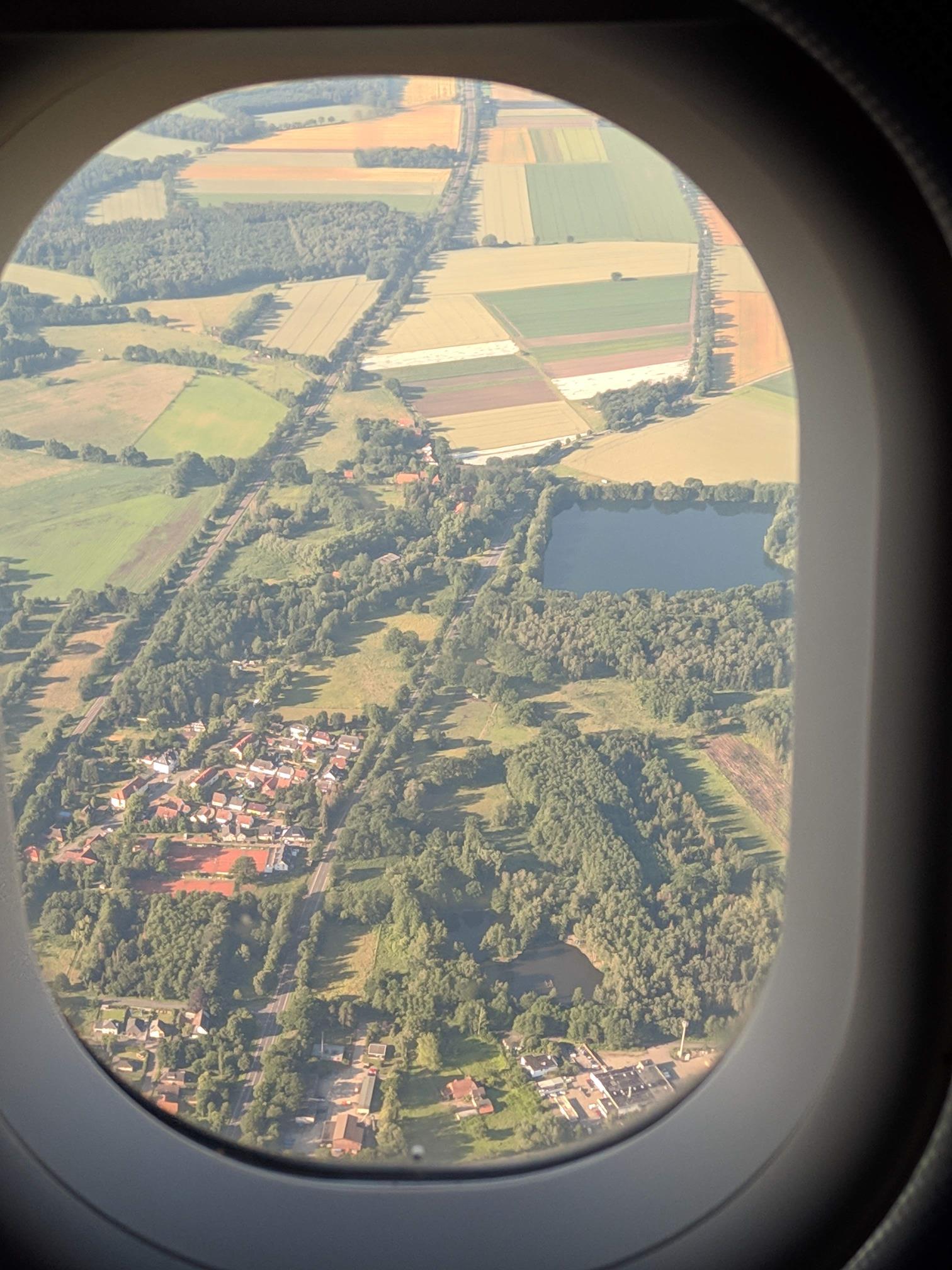 Um kurz vor sieben flogen wir ab und hatten nur einen einstündigen Flug vor uns liegen, der sprichwörtlich 'wie im Flugeβ verging. Mit Blick aus dem Fenster auf die grüne Umgebung Hannovers landeten wir endlich.